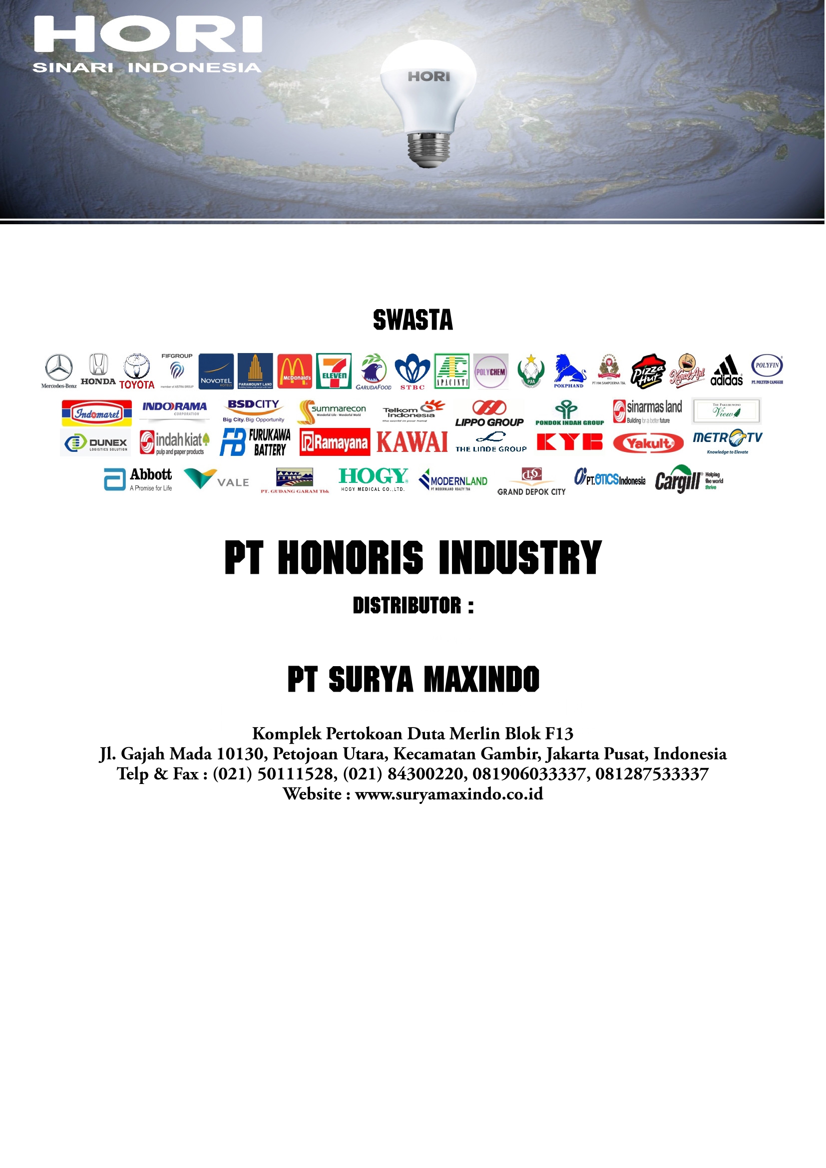 - PT HONORIS INDUSTRY didirikan pada tahun 1982, yang telah berpengalaman memproduksi produk bermerk dari Jepang